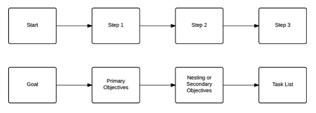 In the end, this process creates a link between every task and the goal, with distinct steps in between. It ensures every activity has a purpose. It will be illustrated in a process map that will look like this: